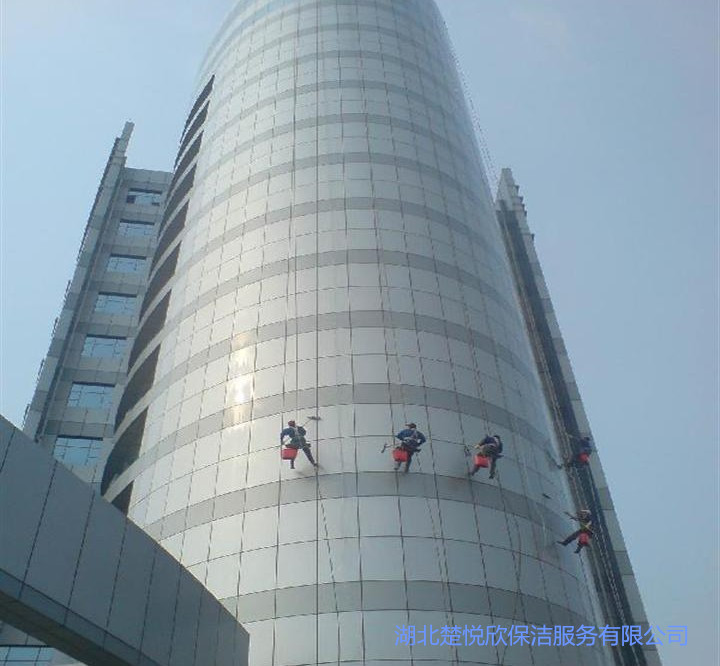 湖北楚悦欣保洁服务有限公司为爱普科斯电子(孝感)有限公司主楼、附楼外墙玻璃提供高效、优质的清洗服务。